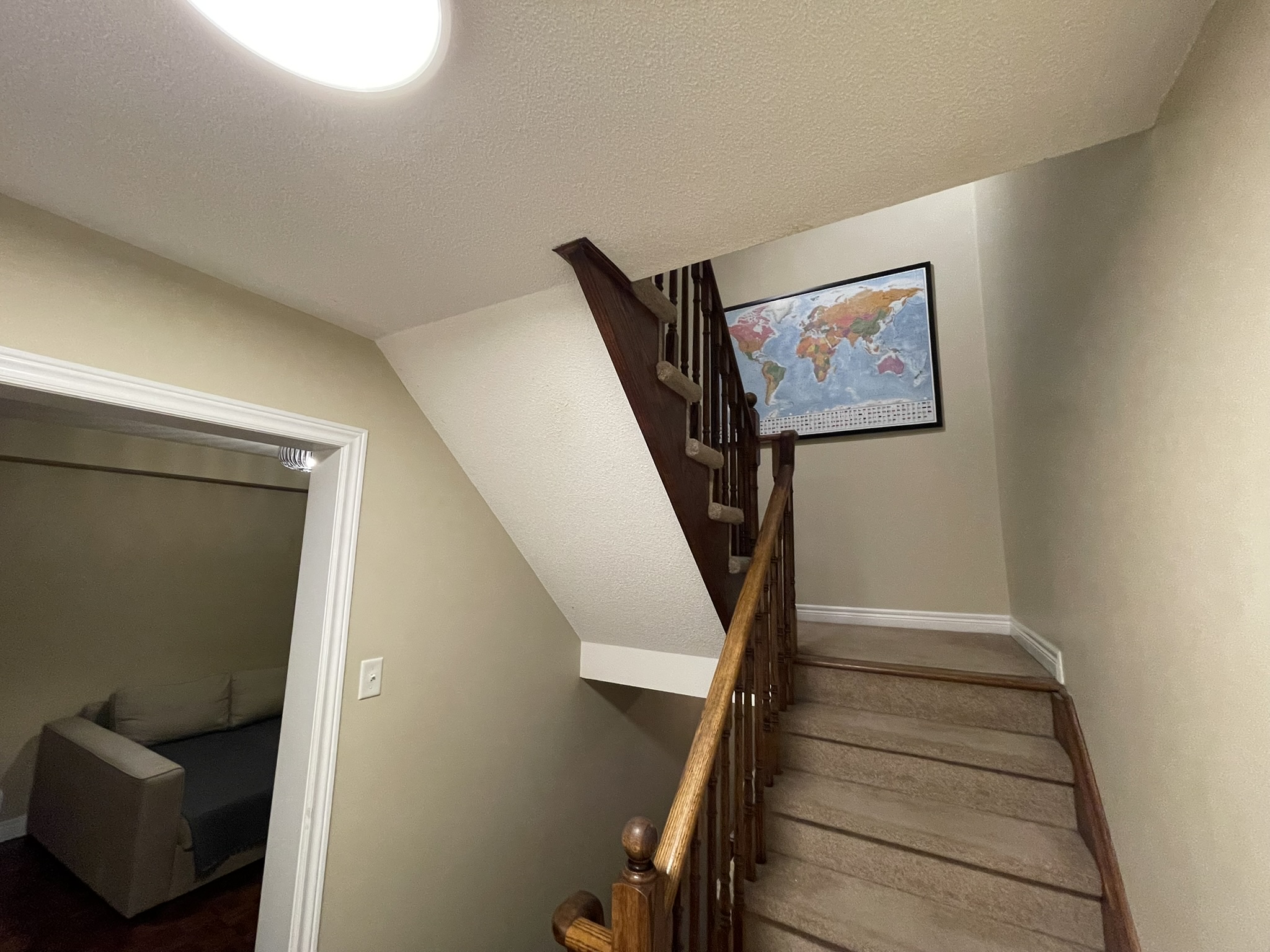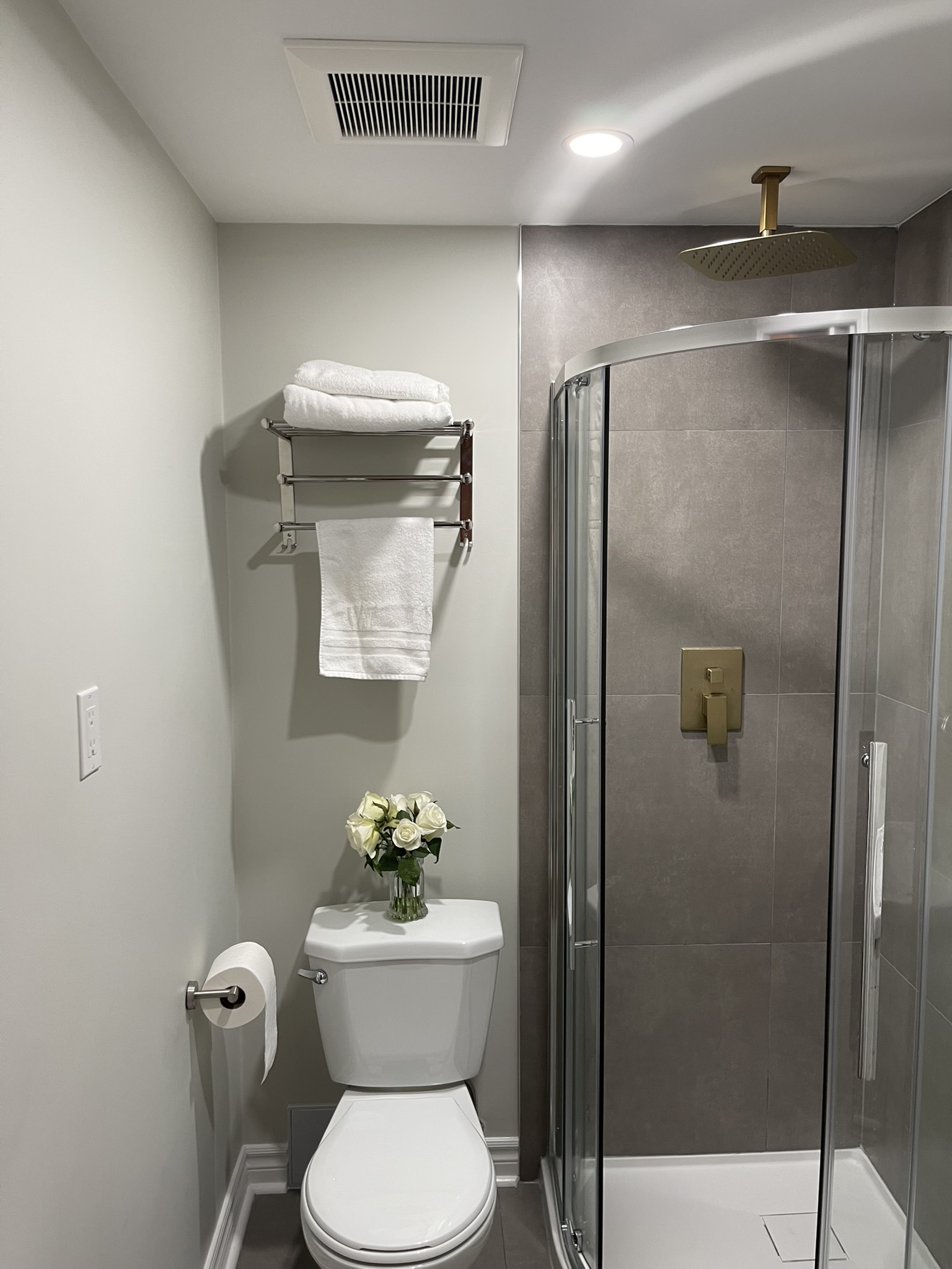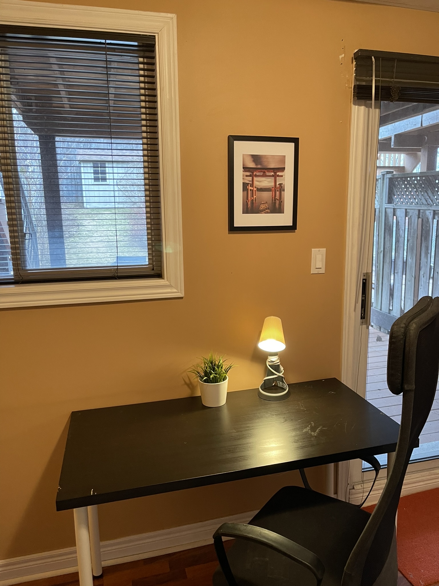 This private room includes one double sized bed, dresser and large walk-in closet. We also provide a work desk, comfy office chair and table lamp. All private rooms have key lock doors. All linens will be provided. You will have access to your new remodeled non-shared bathroom (Ensuite). In addition, there is also a half bathroom (powder room) on the main level. In addition, there is also a half bathroom (powder room) on the main level.