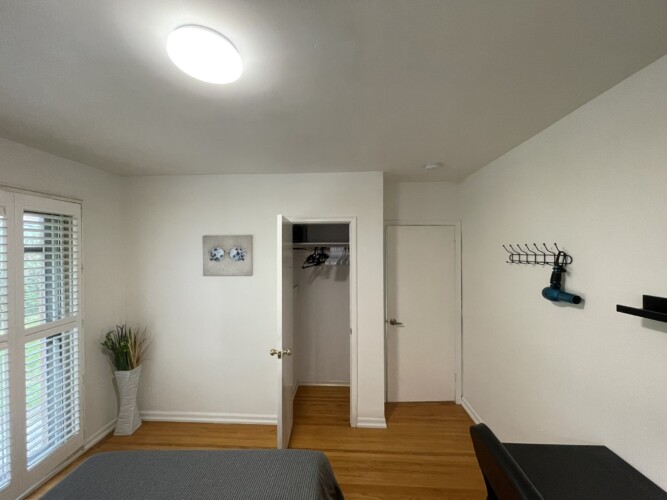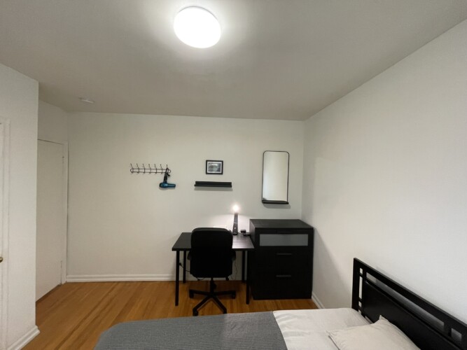 This bedroom includes: one double size bed, drawer and closet for your clothing. We also provide a work desk, work chair and table lamp. The room does have a keyed door lock for your privacy. It is perfect and suitable for working professionals, travelers and students.