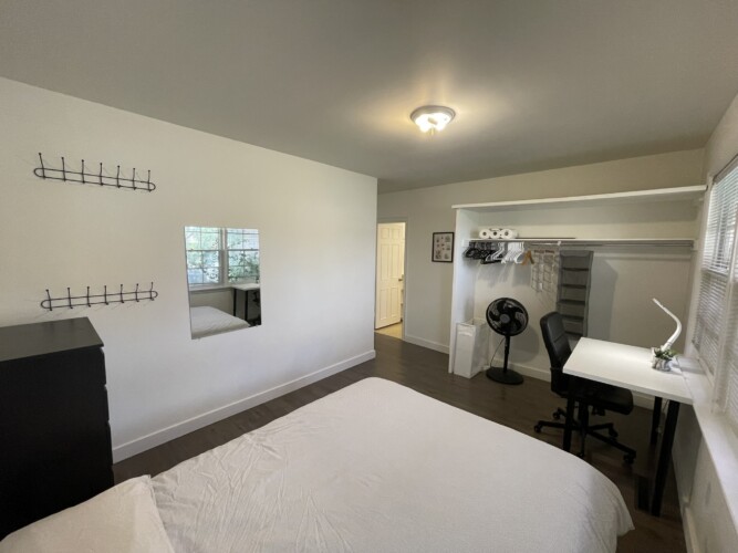 This private room includes one queen size bed, dresser and closet. We also provide a work desk, comfy office chair and table lamp. All private rooms have key lock doors. All linens will be provided. You will have access to your own spacious non-shared bathroom.