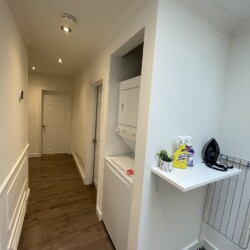 The communal areas such as the kitchen, dining, living and laundry room are shared with two other individuals.