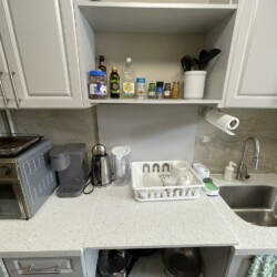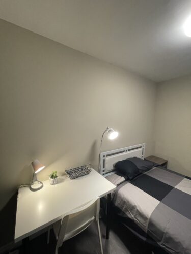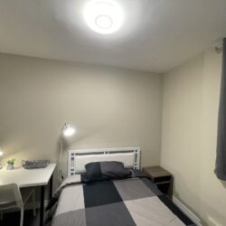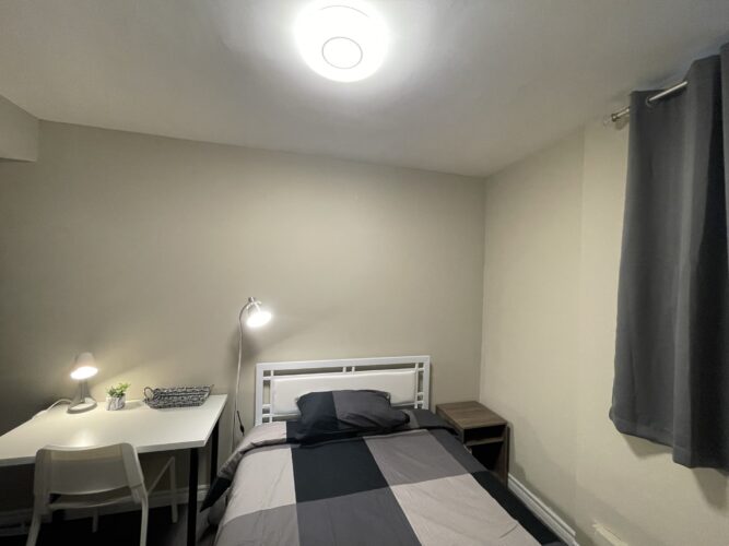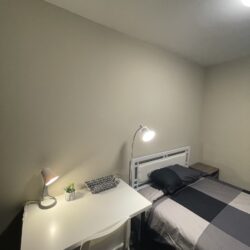 This private room includes one double sized bed, dresser and portable garment rack for your clothing. We also provide a work desk, comfy office chair and table lamp. All private rooms have key lock doors.