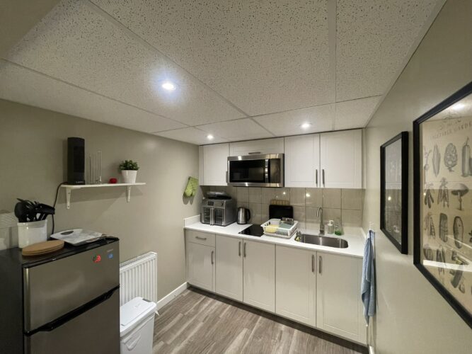 private and fully equipped kitchen. The shared laundry room (washer and dryer)