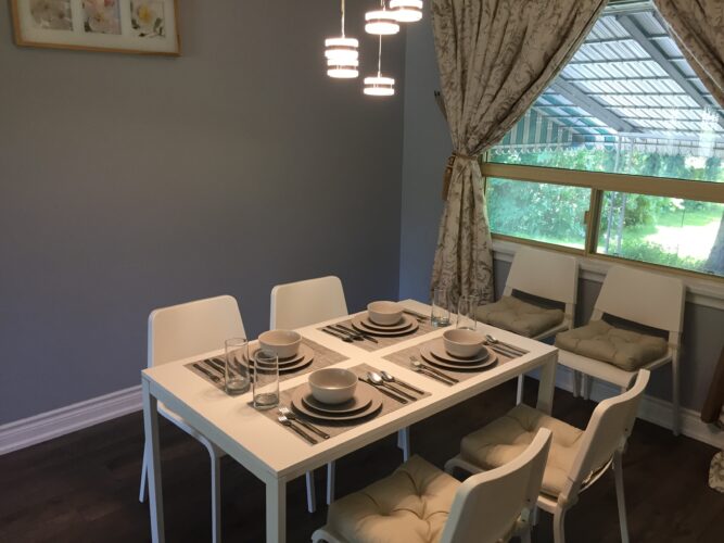 Hello and welcome to our beautiful home! We are located just minutes from Highway 401 and Highway 404/Don Valley Parkway which makes for easy commuting. The nearest bus stop is just a few steps from our house with the nearest subway station approximately an 8 minute bus ride. The location is surrounded by (Food Basic), banks (BMO, TD Bank, CIBC), pharmacy drug store (Shoppers Drug Mart), restaurants (Too many to name), coffee shops (Starbucks) and all within walking distance.